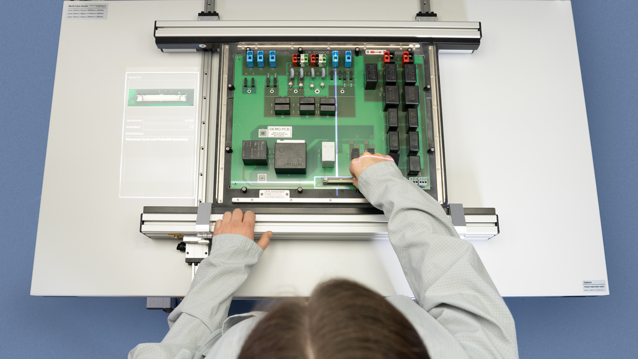 A Multi Line Assist egyaránt alkalmazható kézi THT szerelőállomásokon és automatizált gyártósorokon. A rendszer a szerelési utasításokat közvetlenül a kezelő látómezejébe vetíti, így jelentősen csökkenti a szerelési időt. Az integrált AOI modul minden lépés után vagy a szerelési folyamat végén ellenőrzi az alkatrészek beültetését, és megbízhatóan felismeri a hibákat, például a helytelen polaritást, hiányzó alkatrészeket, vagy a szín- és feliratozási eltéréseket. Minden eredmény dokumentálásra kerül, statisztikailag kiértékelhető, és továbbítható MES rendszerekhez.